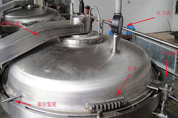高温高压蒸煮锅的结构并不复杂,整体上由锅体和支脚组成。锅体是带保温层的夹层锅,有内外两个锅胆组成。上面部分是一个特制锅盖,与锅沿保持高度契合,保证锅内达到全封闭式无泄漏的环境,从而达到高的气压,使锅内的温度突破100度。