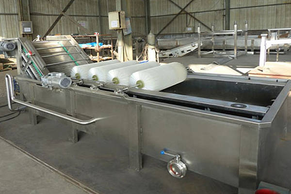 2.设备中设有气泡发生装置,使物料呈翻滚状态,去除产品表面农残的功效,同时可加入适量的药剂,进行xiao毒固色。漂浮物可以从溢流槽溢出,沉淀物从排污口排出,以达到清洗的目的。该设备在气泡、冲浪、提升、喷淋等联合工作下,具有洗洁净高、节能、节水、